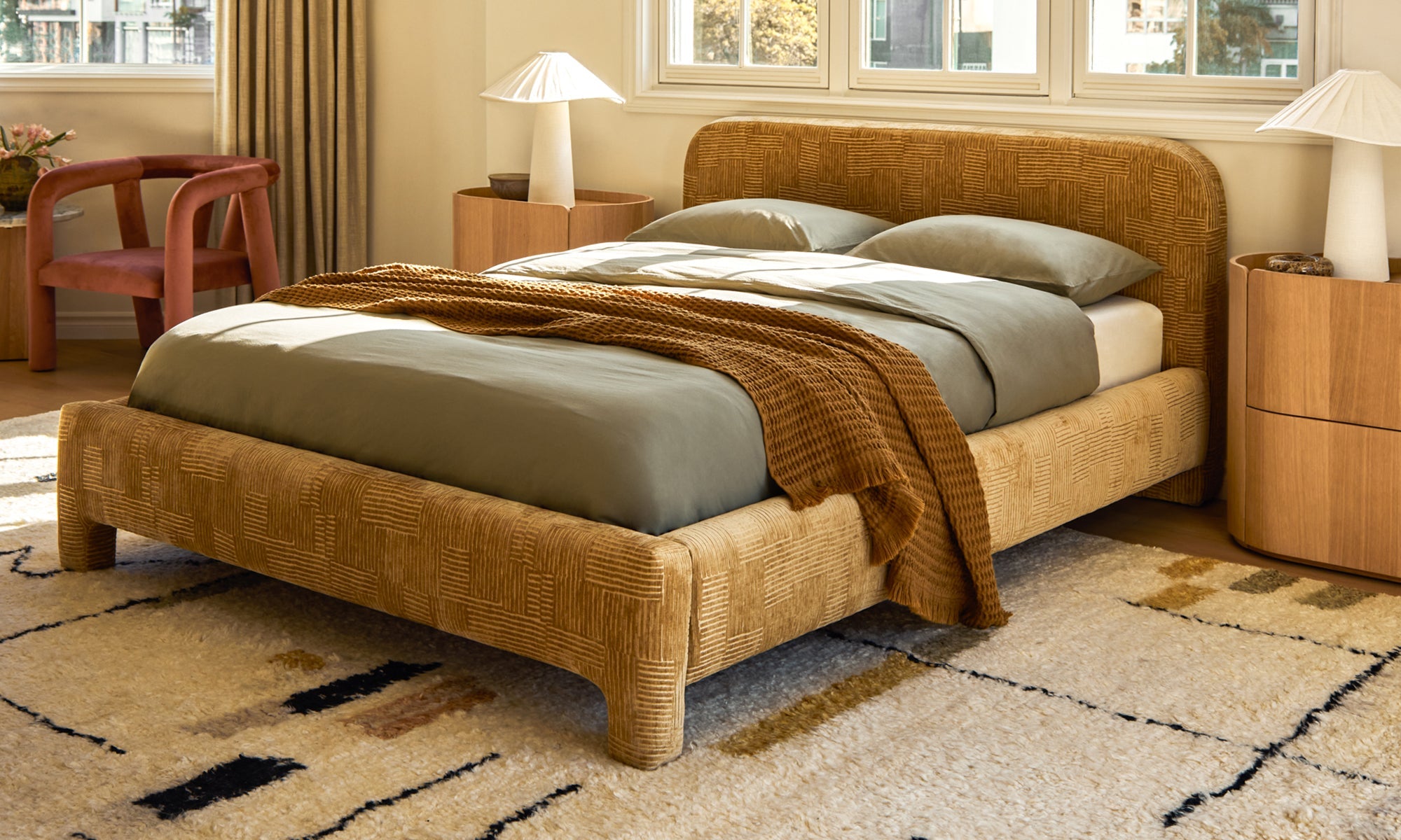 Soft lines, vintage hues, and a total texture turn-up fill this room with a sophisticated yet laid-back warmth.