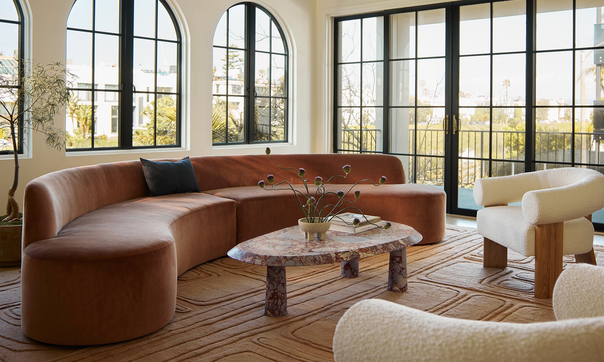 Organic lines and curvilinear silhouettes offer a nod to retro design while feeling refreshingly modern—grounded by terracotta tones that imbues warmth.