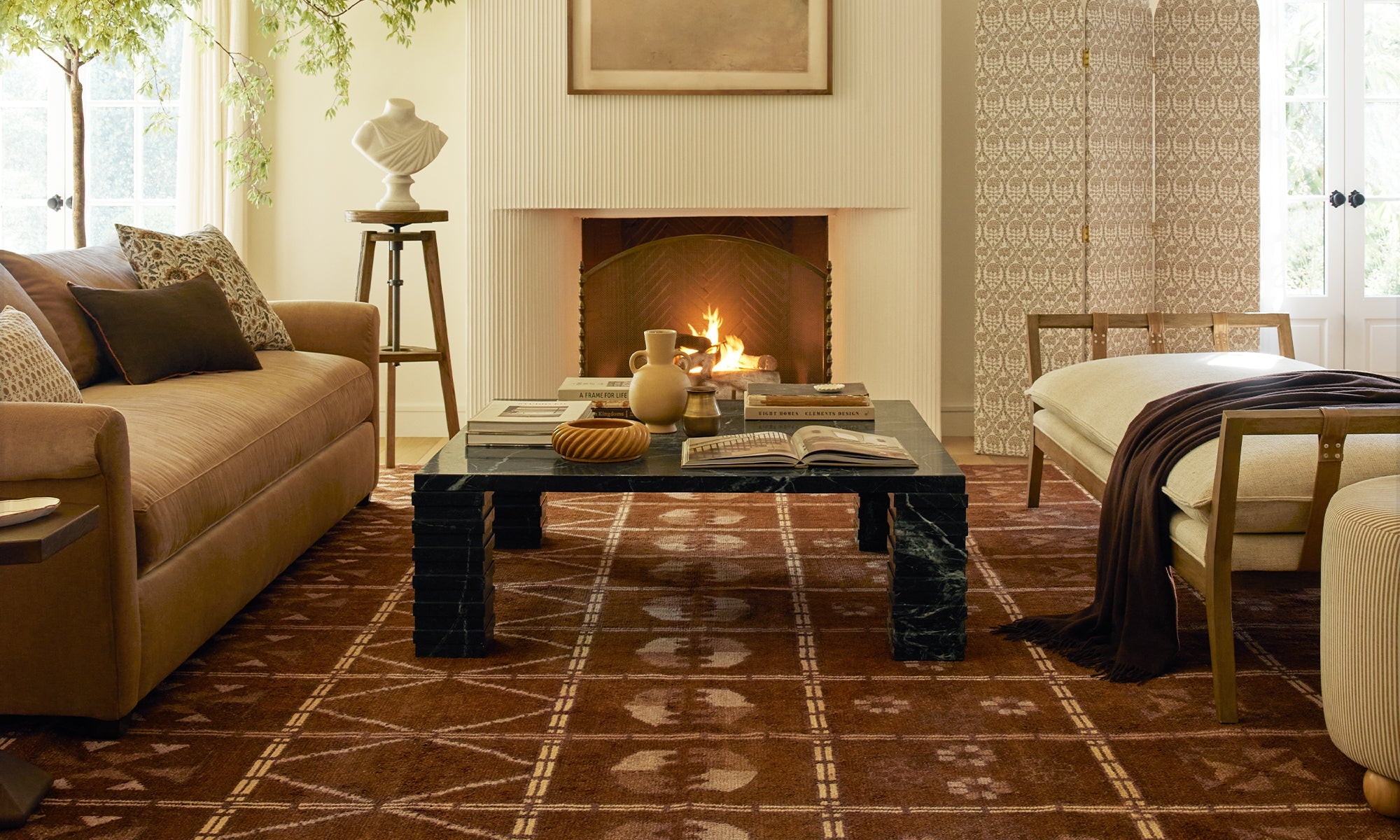 A touch of old world-inspired elegance mixed with modern forms gives this space a warm, welcoming feel.