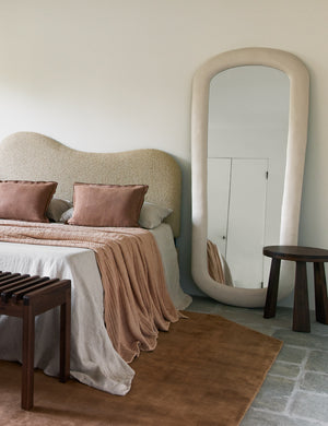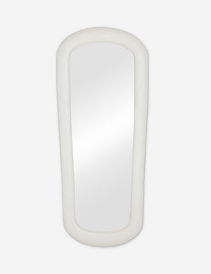 We love the fresh, engaging style of the Alston mirror. This full-length mirror is perfect for leaning or mounting against a wall in your foyer or living area, creating depth and impact with its bright white frame. Its oval shape is a perfect complement to classic architectural lines, blending into the room with a soft elegance.