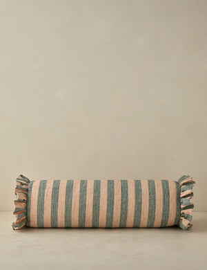 Finish your pillow edit with some vintage flair. Our Amaroso bolster pillow features a subtle striped design with ruffled ends for fresh pattern and texture in your curation. The linen offers a cool, crisp touch, perfect for everyday spaces.