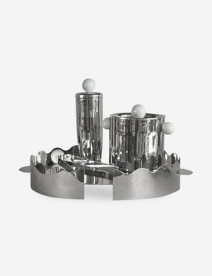 A mirror finish and wavy shape bring a chic feel to this tray. The handled design is perfect for serving drinks or staging barware with a modern edge. Powered by People works with makers from all over the world to bring small-batch, responsibly made goods to market, like Meso, whose handcrafted pieces celebrate sustainable craftsmanship and Latin American design.