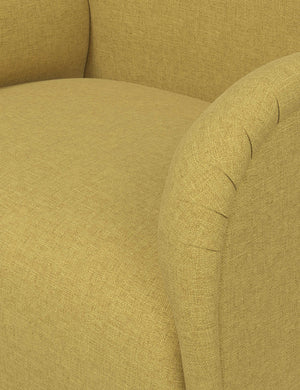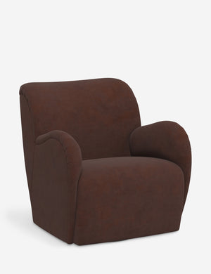 Overstuffed arms and a gently contoured seat create an inviting accent chair with instant lounge appeal. A swivel base brings dynamic appeal to this plush comfort chair, while bespoke upholstery lets you tailor the design to suit your space.