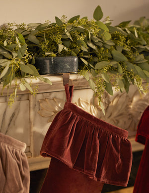 Bring a touch of polish to your holiday decor with this marble stocking holder. A marble cap sits on the brass-finished hook, providing a stable base for stockings or garlands. It's the perfect way to style your bookcase or mantel with sophistication and cheer.