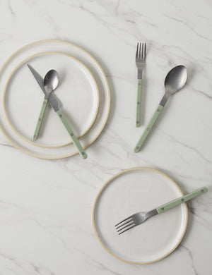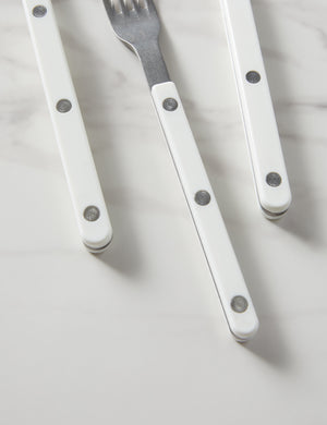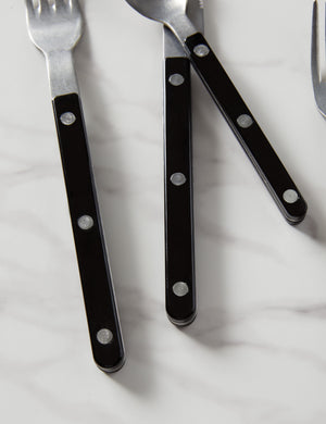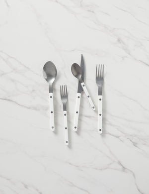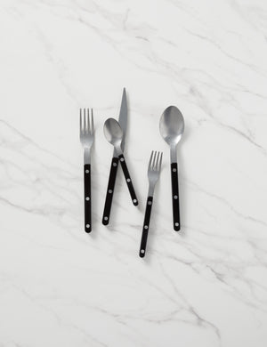 Bring a unique touch to your tablescape with truly distinctive cutlery. Whether enjoying a bistro-style brunch or gathering for al fresco dining with friends, these flatware elements will add a little continental flavor. Made in France, each 5-piece set includes full-course silverware for a single-place setting.