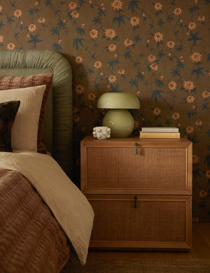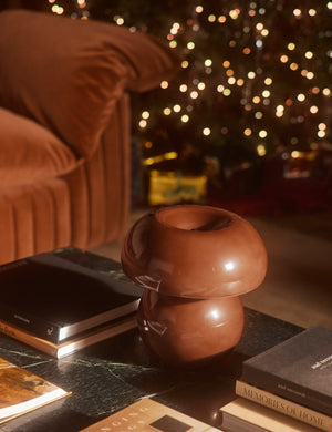 A nod to 1970s design, the Bobbin table lamp makes a bold impression with its mushroom-inspired silhouette. The monochromatic glass gives it a sleek, sculptural presence, while the compact size makes it a versatile lamp for living room or bedside styling. We love the rich touch of color and warmth this piece brings to any curation.