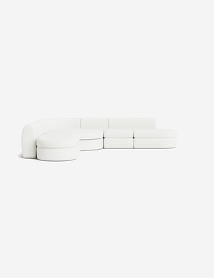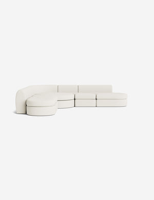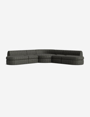 Our Buckley sectional brings sculptural comfort to your space with its round corner seat and dramatic lines. The sleek silhouette nods to vintage design with a modern feel, striking a balance between statement style and everyday ease. This chic sectional sofa offers a refined anchor for a relaxed yet design-forward living room curation.