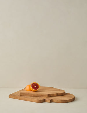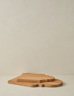 Layer some natural grain warmth into your kitchen with this chic cutting board duo. The distinctive shape and varied sizes make this set a standout pair that can fit into your everyday cooking rituals.