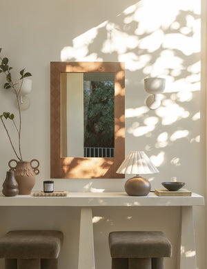 A tonal diamond pattern creates a chic display in the Chelan mirror. This framed mirror is handcrafted with a design that is bold and engaging, offering refined appeal in a living area, entry, or bedroom, delivering versatility with impeccable style.