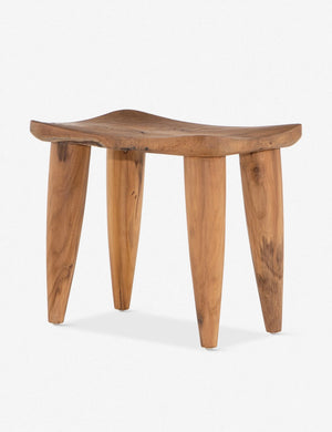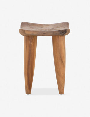 Fashioned from solid teak wood for an organic texture rich with rustic character, this stool gives you beauty and durability, complete with natural knots and graining throughout the design. A round top and tapered legs cast a timeless profile full of earthy appeal.