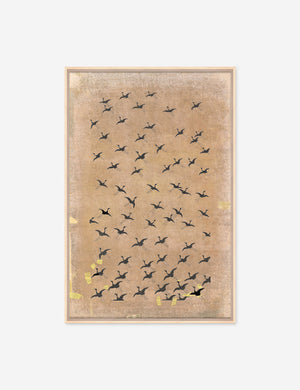 A pattern of cutout cranes sits on a solid field in this re-produced Kimono stencil from the 1930s, bringing a moment of elegance and patina to your wall decor. This unique wall art offers a tranquil focal point or beautiful layering piece for an artfully modern curation.