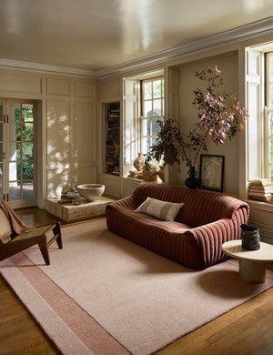 A handmade rug collection from Leanne Ford x Loloi designed to ground your space with warmth and artistry. This hand-tufted rug features a dense, wool pile with a cushioned tread underfoot. The bold stripes create soft contrast, setting a relaxed yet refined foundation.