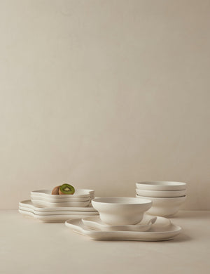 Celebrated for their ceramics and bold designs, Lolly Lolly Ceramics brings their knack for sophistication with a playful edge to an exclusive collection for your entire home. Their Dew Drop dinnerware takes inspiration from the nature of water and the puddles that form in the stillness after it rains. The unique shapes were designed for layering and stacking to create an inspired tablescape grounded in organic beauty.