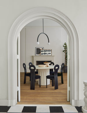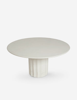 Classical design notes get a modern treatment with this round fiberstone dining table. The textural column-style base supports a polished top to create a refined table design perfect for a kitchen, intimate dining area, or outdoor dining table. This piece is from our exclusive Sarah Sherman Samuel collaboration and features all the trademarks of her warm, edited style.