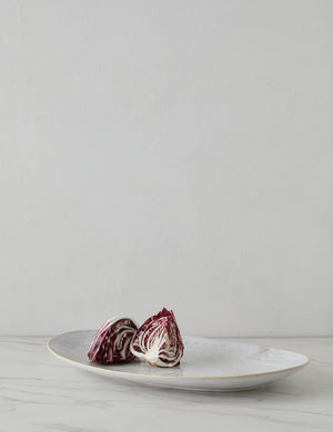 With a dynamic glaze coursing with speckles and striations, the Eivissa dinnerware collection from Casafina feels as if it has been poured into its blissfully organic forms. Fashioned from stoneware, the delicate lines of this serving platter belie a durability that strikes the perfect balance between stunning and practical for everything from shared bites to final courses. Finish your dinnerware set with this essential accent.