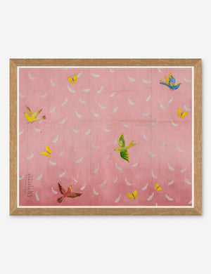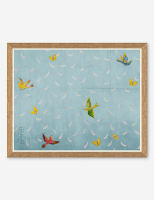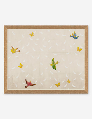 Elevate your wall decor with the iconic work of textile artist, engraver, and painter Paule Marrot. Each print captures her simple, lyrical style with boldness and fidelity—offering wall art with a fresh yet enduring appeal. Colorful birds amidst a scatter of feathers bring a delicate charm to this minimalist composition.