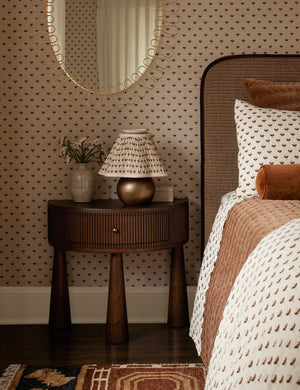 Natural grain texture takes a sculptural turn in our Fletcher nightstand. The modern silhouette is defined by its chunky tapered legs and a crescent-shaped top with fluting along the sides. This wood nightstand strikes an artful poise at your bedside—with a single drawer for the perfect touch of storage.