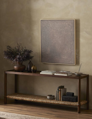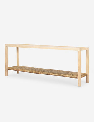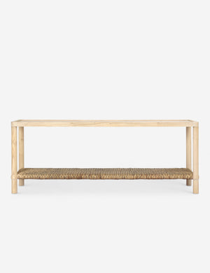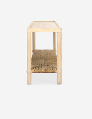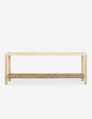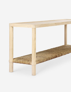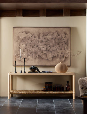 Four Hands brings their exceptional craftsmanship to a timeless collection rooted in Amber Lewis' perennial California style. A woven lower shelf brings natural texture and warmth to the Gabriella console table. Rounded corners soften this modern console table's rectangular silhouette, creating a refined accent for any setting.