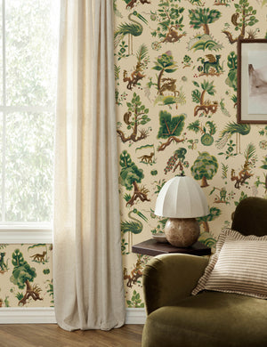 Your statement wall awaits. This beautiful wallpaper design from GP & J Baker features fantastic illustrations in a lush, colorful palette. We love the warmth and whimsy of this wallpaper pattern for a nursery or playfully styled living space.