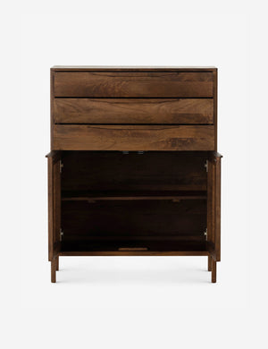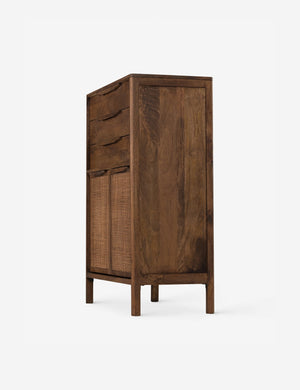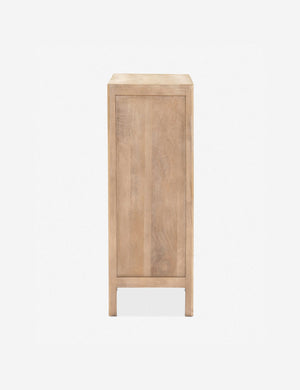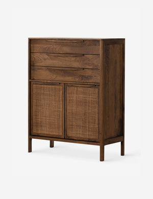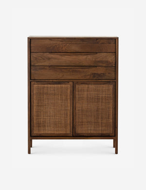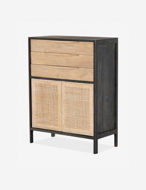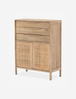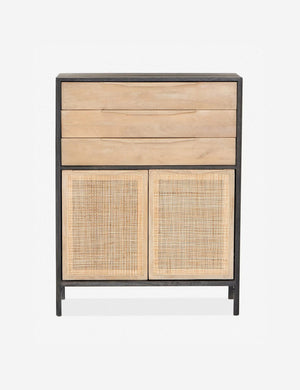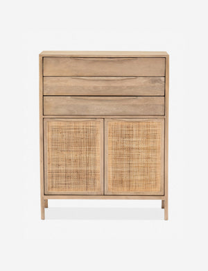Clean lines and an airy profile bring a cool coastal feel to the Hannah dresser. We love the classic touch of the woven cane front for its natural texture and warmth. This tall dresser features three drawers with cabinet doors below—versatile storage for a bedroom or home office.