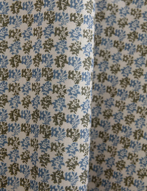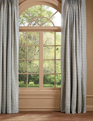 Heidi Caillier infuses this exclusive collection with all the warmth, pattern, and nostalgic details that define her celebrated interiors. Haris layers small-scale florals in a subtle checker, offering a tailored look with depth and charm. Structured pleats emphasize the motif's clean repetition, creating a polished window treatment suited to transitional and formal settings.