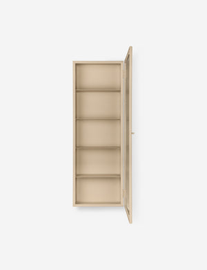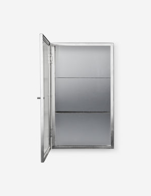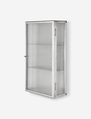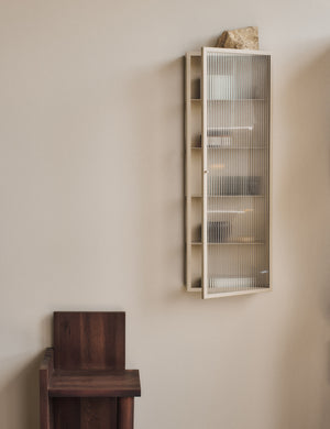 Reeded glass and sleek metal framing bring a modern feel to this wall-mounted cabinet. It’s perfect for storing essentials in a bathroom, entryway, or kitchen while keeping the look clean and elevated. Hang it above a vanity for skincare and fragrances, or in a hallway to keep keys and small objects neatly tucked away.