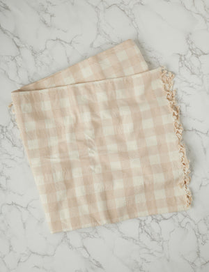 Heather Taylor Home designs linens that fold into and elevate every gathered occasion. Handwoven with durable, light cotton, this table cloth spreads out in a classic gingham design with tassel detailing so you can ground your tablescape with the easy care of this natural fabric.