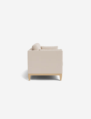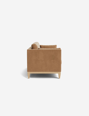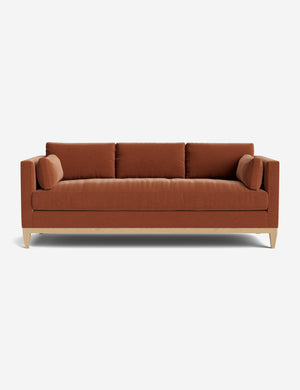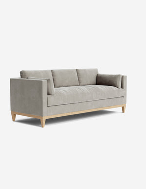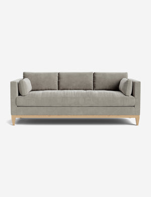 The Hornsby sofa styles a timeless look set for transitional appeal. This plush, loose-back design is neatly tailored in velvet, offering a luxurious seat with a relaxed feel. A bare wood base lifts the couch off the ground for an open silhouette that feels light and modern in the room.
