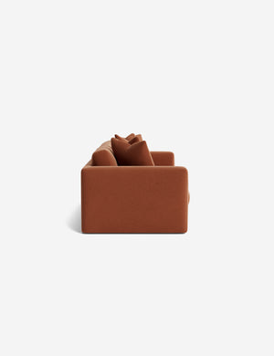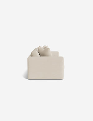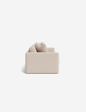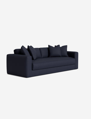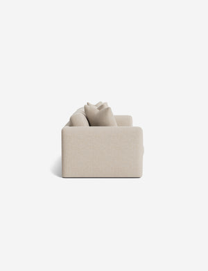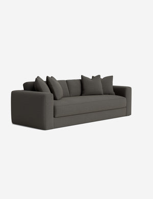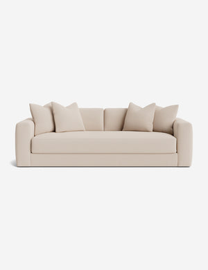 From a cozy family room to a casually modern lounge, the Hughes sofa is set for chic comfort. The boxy silhouette offers an inviting seat that styles seamlessly into your space. Tailored scatter pillows complete the look, elevating this versatile couch.