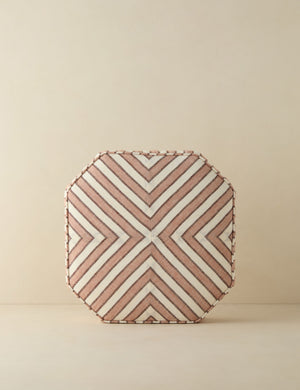 Our Indrik pillow brings a pop of pattern to any mix. The angular stripes offer a dynamic accent for an artful take on modern decor. The unique shape of this box pillow is perfect for adding depth and dimension to a seat.
