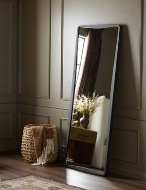 The Karrington floor mirror balances timeless form with a subtle, sculptural edge. The bold metal frame features a bowed hourglass profile, bringing graceful movement to the grand scale. Style this floor mirror in a bedroom or lounge to bring depth and distinction to your space.