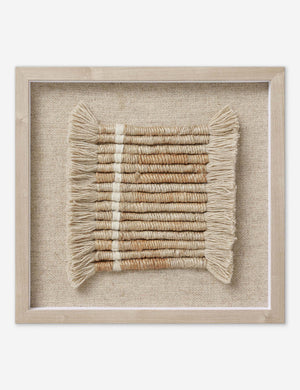 Add a burst of texture to your wall art collection with this framed textile art. The coiled weave features a loose fringe on either side offset by a single accent stripe. This piece offers a modern look rooted in timeless artistry, offering a grounding touch to transitional wall decor.