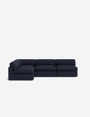 Our Kingaby sectional blends relaxed comfort with bold, rounded lines for a modern take on lounge seating. Plush cushions and generous proportions invite you to sink in, while the corner-based configuration creates a grounded, sculptural shape. A perfect anchor for social spaces, this modular sectional invites long, leisurely lounging.