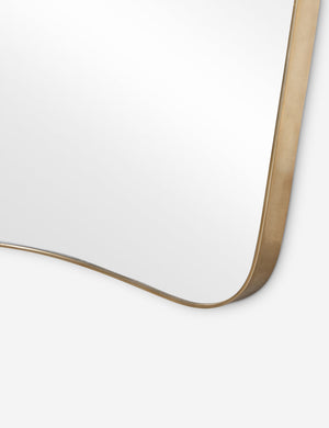 Bring a stylish edge to your curation with the Kitsa mantel mirror. Scaled to style above a fireplace or console, its wide frame enhances light and adds depth, opening up your space. The slim profile and playful silhouette make it a chic fit for modern decor.
