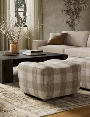 Four Hands brings their exceptional craftsmanship to a timeless collection rooted in Amber Lewis' perennial California style. With its subtle curvature, this ottoman makes a stylish floating accent for a den or living area.