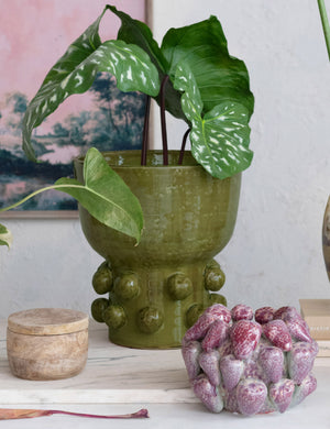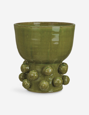 This footed vase features a hobnail base in a glossy green glaze that highlights its bold shape. Anchor a shelf or credenza with fresh florals or let it stand alone as a statement accent.