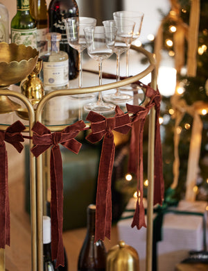 We love a luxe touch at the holidays. Mauree offers the smooth sheen of velvet in a bow garland so you can trim your tabletop or banister with a little extra texture this season.