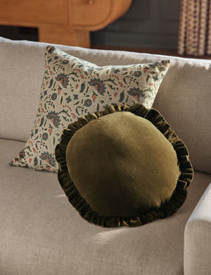 Velvet with a ruffled flange? That's luxury in touch. A solid design balances our Mauree pillow for a glamorous yet refined accent. This round throw pillow is a rich addition to thoughtfully layered spaces.