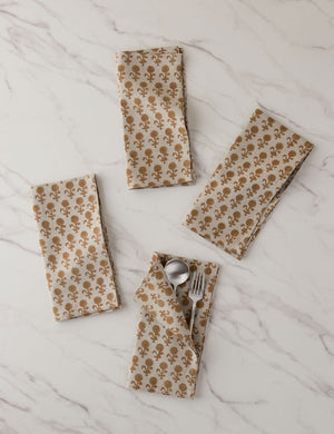 Timeless artisanry meets the fresh touch of linen in these handcrafted napkins and placemats. These table linens feature a charming block print design, to bring a pop of floral whimsy to your table.