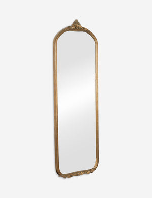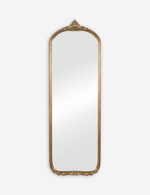 The Mesnier floor mirror balances vintage character with a refined simplicity. Rounded corners and a gold finish lend a touch of grace, perfect for modern or traditional spaces alike. Style this large mirror in an entryway or primary suite for a timeless statement.