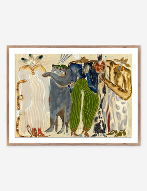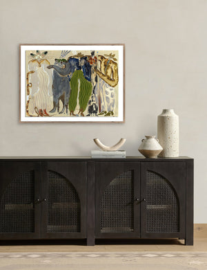 Caroline Pinney's artwork has a vibrant style that captures subjects with lyricism and movement. Create a focal point or set off a salon-style art wall with this abstract group portrait. The wardrobe of its figures delivers a brilliant palette of color and pattern.