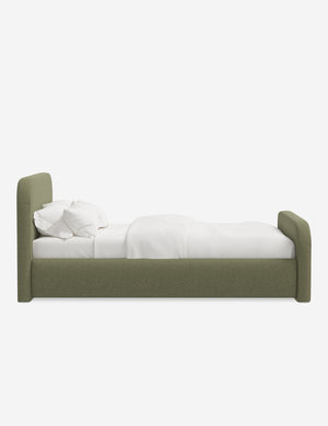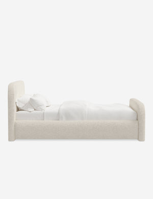A streamlined design and low, rounded headboard bring soft appeal to this upholstered bed frame. Choose from a wide range of fabrics to find the perfect look for your home design. With its raised footboard, this bed offers a stately centerpiece made for modern comfort.