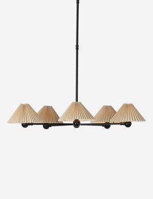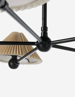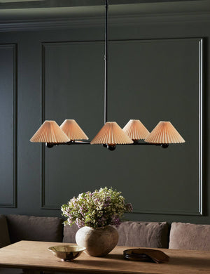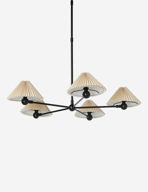 Industrial meets chic in the Newell chandelier. Five pleated shades float atop the black metal frame to add a textural detail over the room. This modern chandelier pairs a transitional look with an ingenious mounting system that can attach to angled or flat ceilings for placement throughout your home.