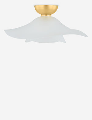 A flowing floral silhouette defines this elegant flush mount fixture. The nested glass shades reflect and filter light, creating a bright ambiance overhead. A brass-finished canopy completes this compact ceiling light with the perfect touch of polish.