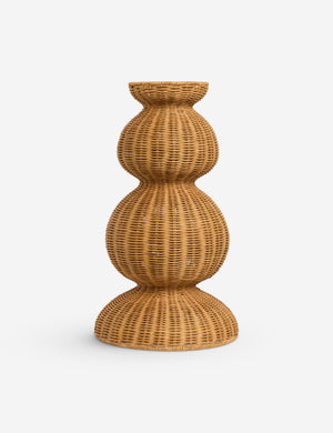 The Olivera lamp pairs rich texture with a fluid silhouette for high-impact warmth. Its sinuous form is woven from wicker for an organic touch with artful appeal. This table lamp brings a modern edge to desks, side tables, or nightstands.