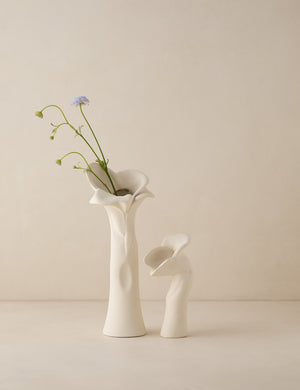 The Pari vases offer a soft sculptural note with their slim shape and expressive floral openings. Nestle them together for a botanical moment in any curation. This piece is from our exclusive Sarah Sherman Samuel collaboration and features all the trademarks of her warm, edited style.