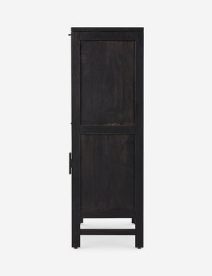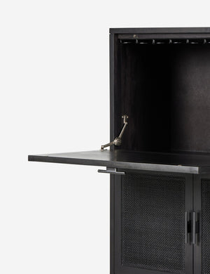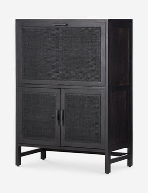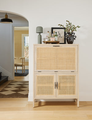 This bar cabinet is crafted from solid mango wood and woven cane paneling then finished with iron hardware for a sleek touch. A spacious interior provides storage for stemware and all your cocktail essentials, while the drop-down front makes the perfect surface for mixing. We love this piece as a chic addition for entertaining.