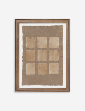 Phobos features a textured composition with handmade paper layered into a tonal collage. The minimalist composition is floated in a light walnut frame to set off the grounding palette with quiet impact. Style this artwork on its own to bring a fresh dimension to modern wall decor.