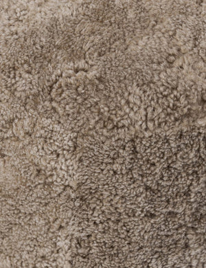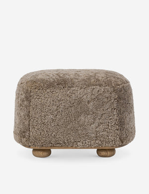 The Rajah ottoman features an oval silhouette and rounded oak bun feet for a soft, grounded feel. Upholstered in a plush shearling-style fabric, this small ottoman adds cozy texture and sculptural charm. Float it in the room or style it by the sofa for an inviting, versatile perch.