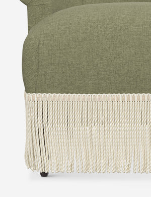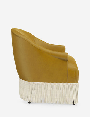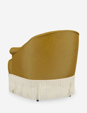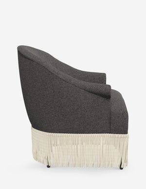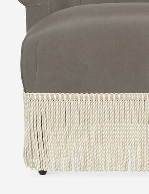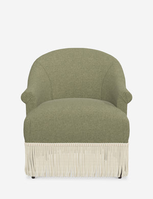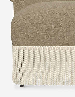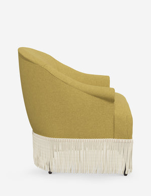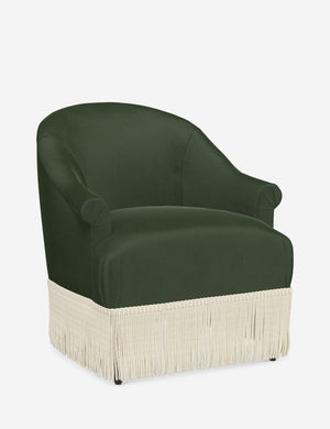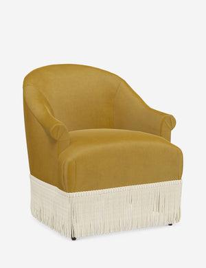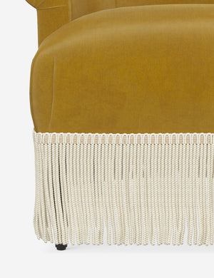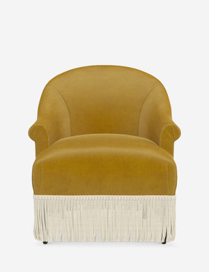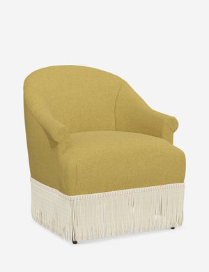 The Renaud chair leads with a fringe. The timeless profile is wrapped in bespoke upholstery and fitted with a long fringe trim that styles the piece for statement appeal. Whether tailoring a traditional sitting room or looking for something chic for a corner reading nook, this accent chair brings a classic touch to comfort.